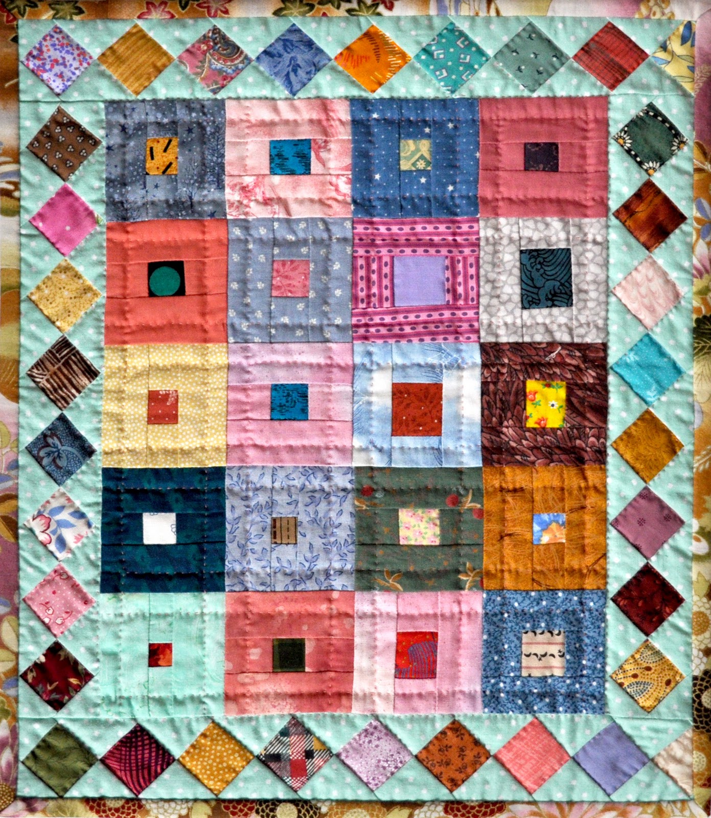 The catalog includes over 100 of the doll quilts made by visionary artist Andrea Balosky, now Nyima Lhamo, who currently lives in seclusion studying Buddhism in Mungpoo, near Darjeeling, India, in the Himalayas. Lhamo has not made any quilts since 2004, but recently, with quilts on her mind during the process of corresponding about the "Small Wonders show and catalog, she made 6 miniature quilts using cotton picked from plants for an Alzheimer's fundraising quilt auction.