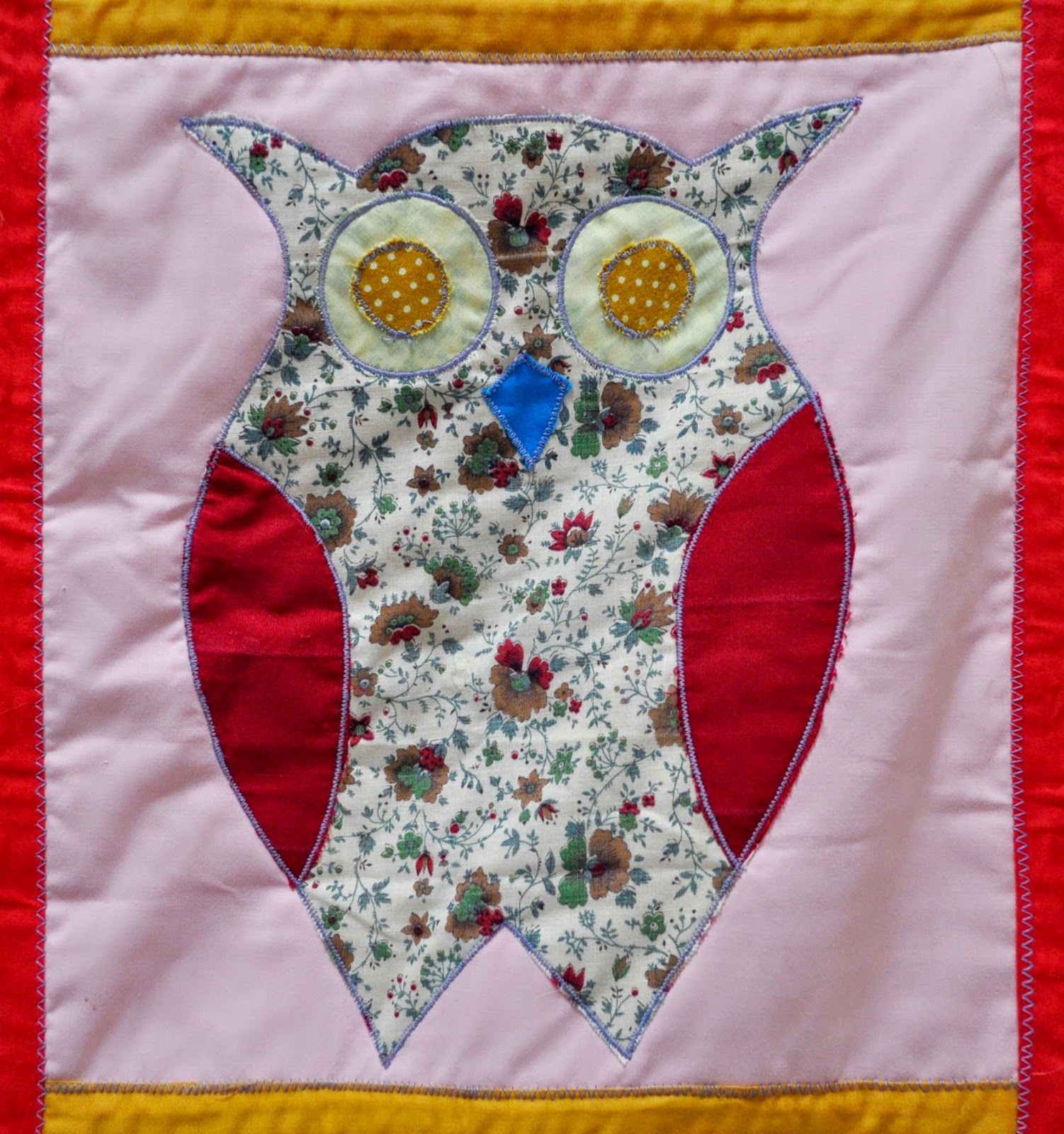 ReplyDeleteLove this! It reminds me of a quilt I had as a little girl. The quilt had a little girl with a bonnet on it, done in the same style as the owl.